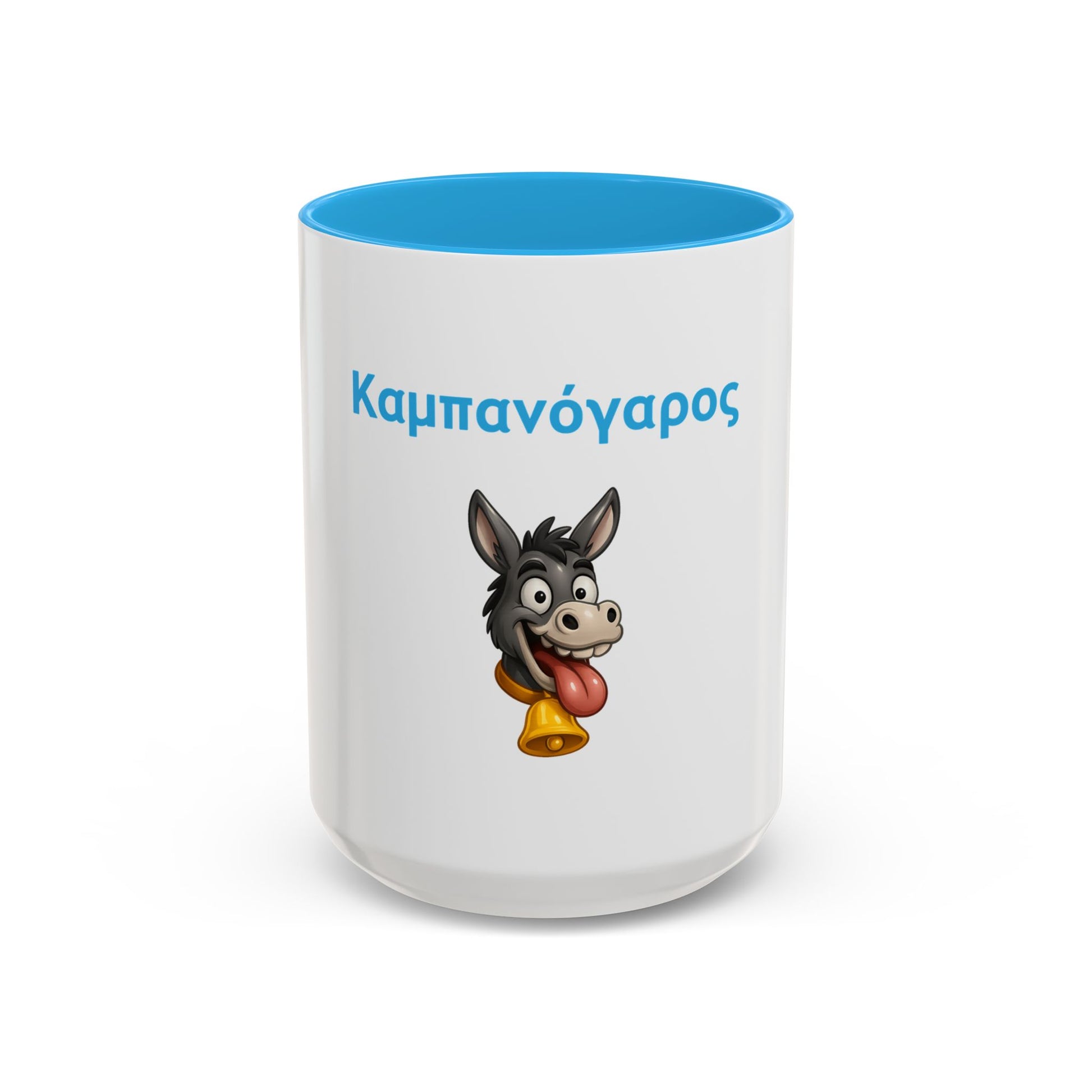 The “Καμπανόγαρος 🔔 🫏” Two-Tone Accent White-Light Blue Mug 15oz is for those who don’t mind a good laugh at their own expense. A witty mix of traditional humor and modern design, perfect for daily smiles with every sip.