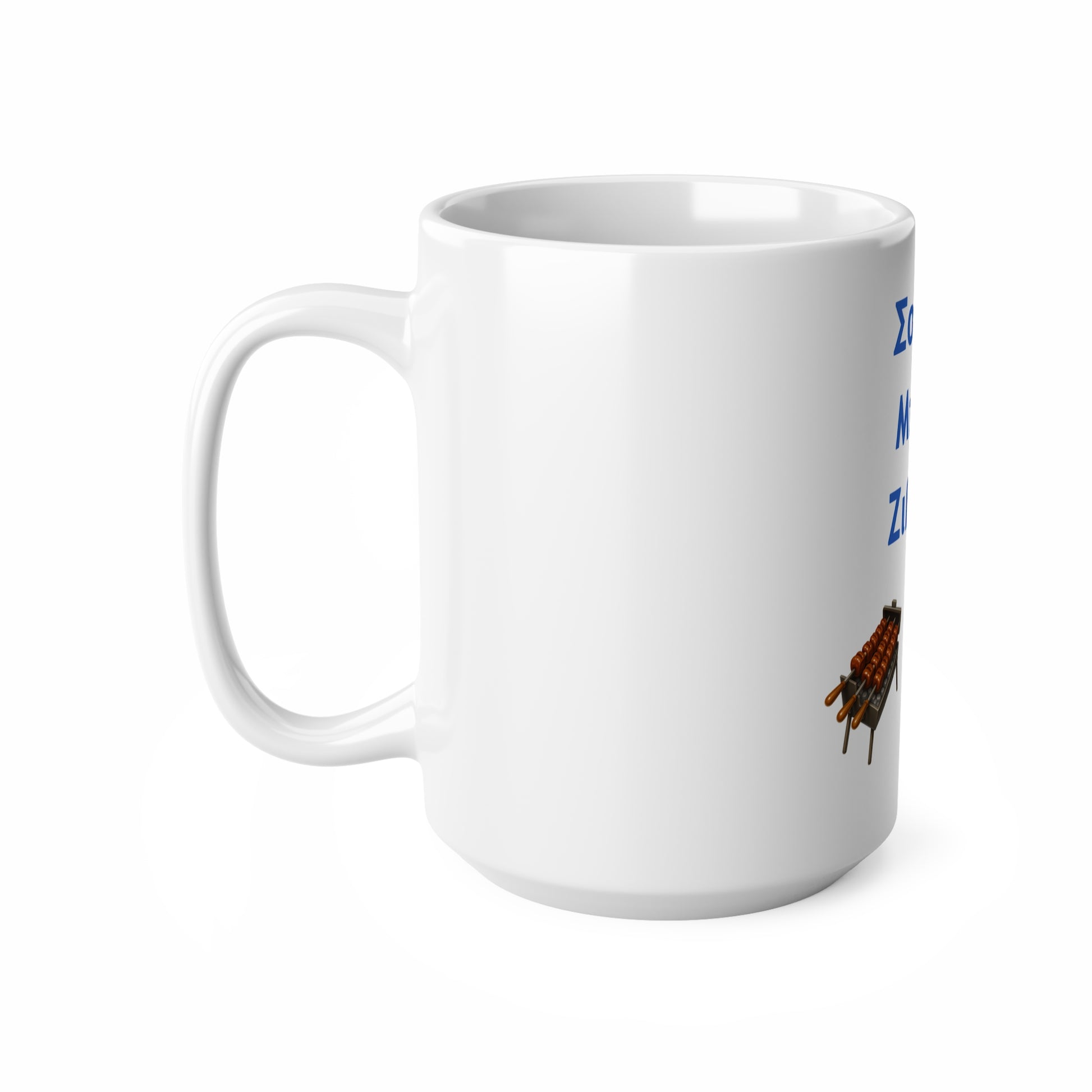 Warm, playful, and full of character. The “Σούβλα • Μπύρα • Ζιβανία 🍖🍻🇨🇾” White Mug 15oz brings a taste of Cyprus to your coffee or tea — blending a sleek black finish with a design that celebrates great food, great drinks, and even better company.