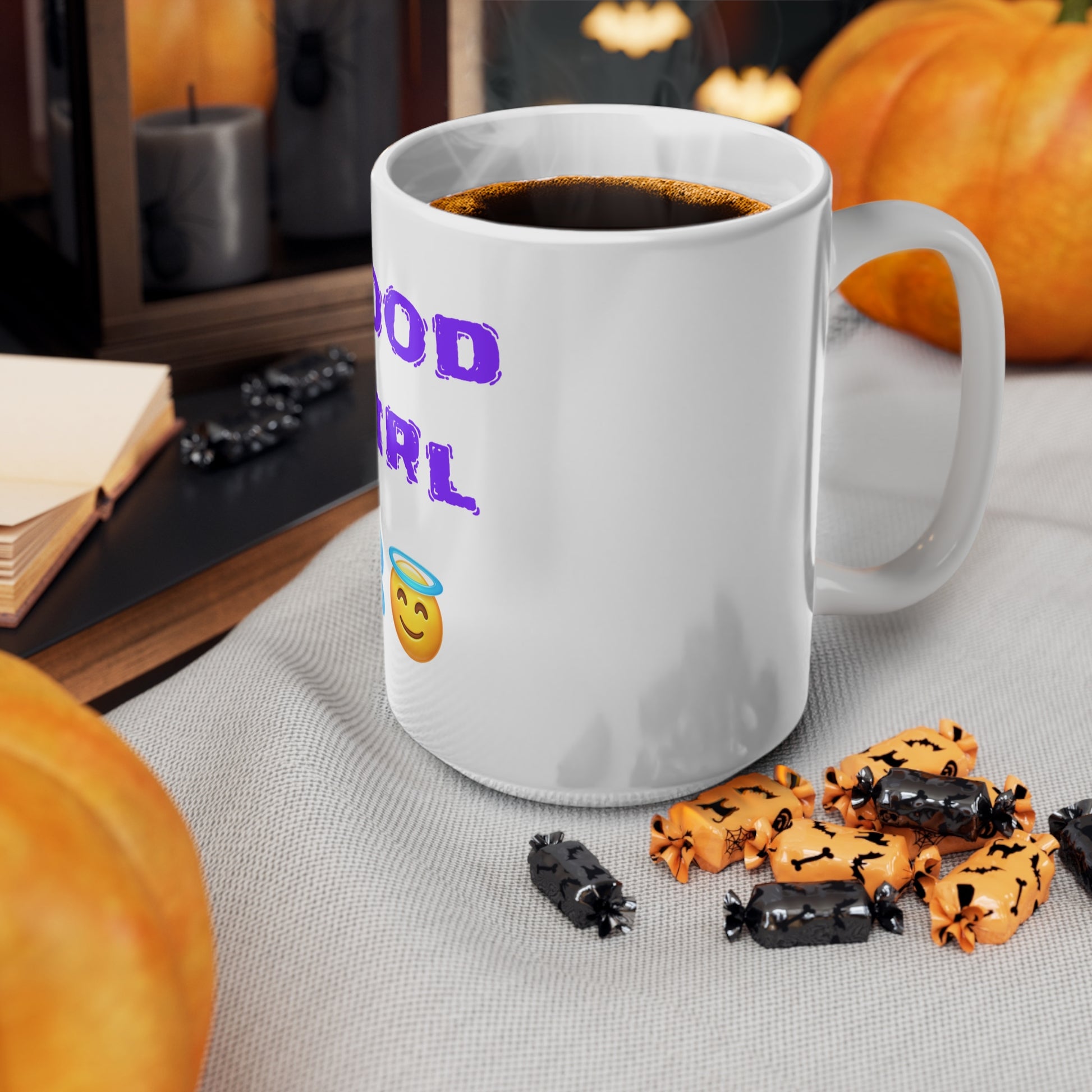 Keep it light and fun with the “Good Girl 😇” White Mug 15oz. Playful, confident, and perfect for daily coffee or tea.