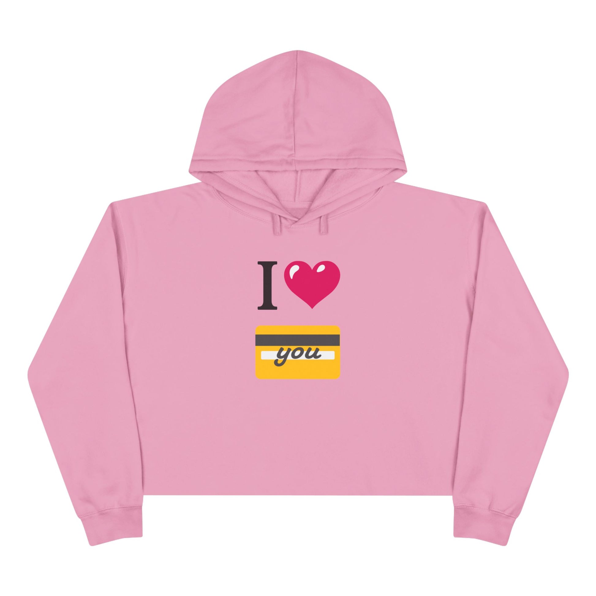 Express love with humor and subtlety. The “I 🩷 you 💳” Crop Hoodie captures effortless charm — ideal for romantics with a playful side or anyone who believes love should always come with a smile.