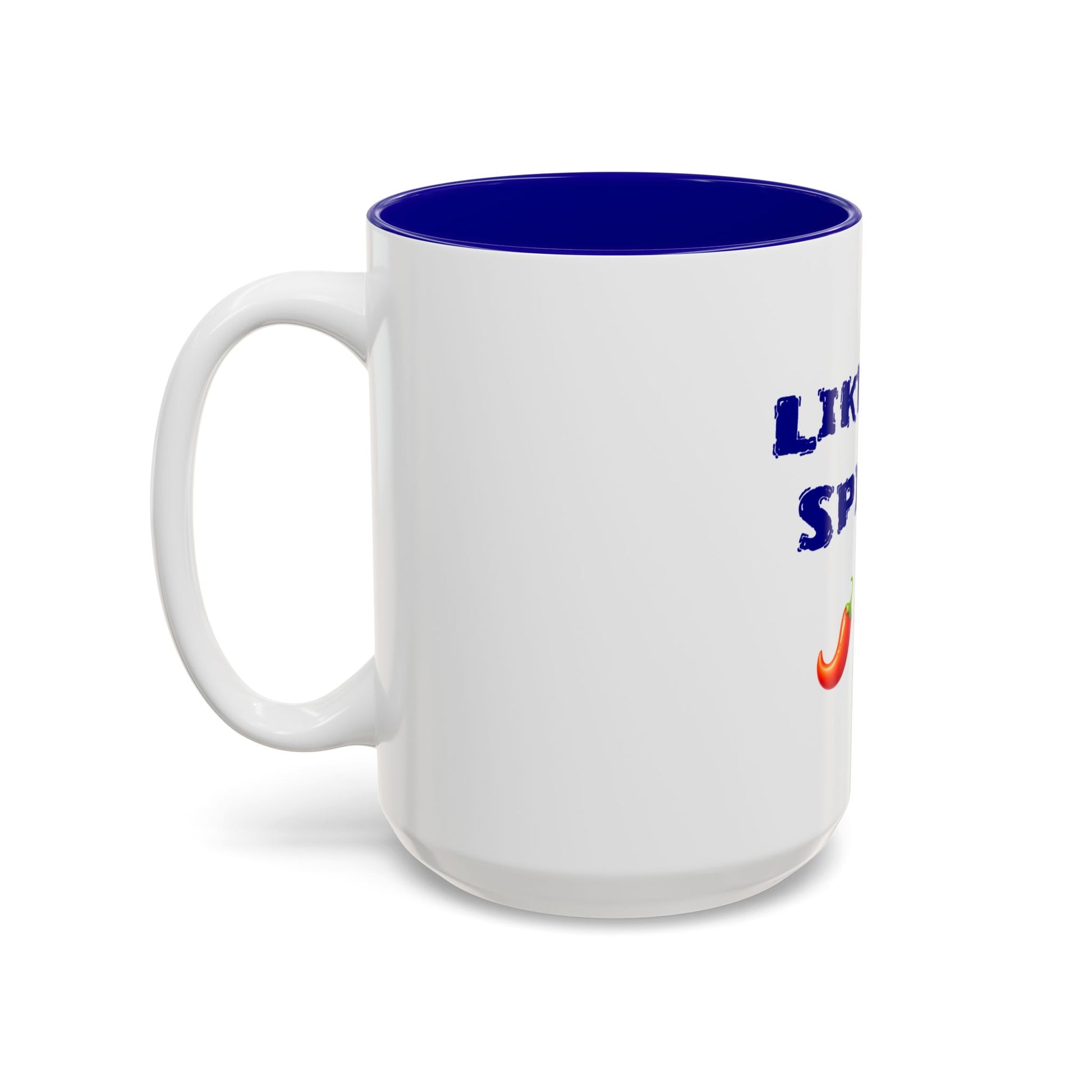 🌶 SpicyWhite Ceramic with Colored Interior • 15oz (0.44 l) • C-Shaped Easy-Grip HandleLike it Spicy 🌶 🍑 – Two-Tone Accent White-Blue Mug 15oz