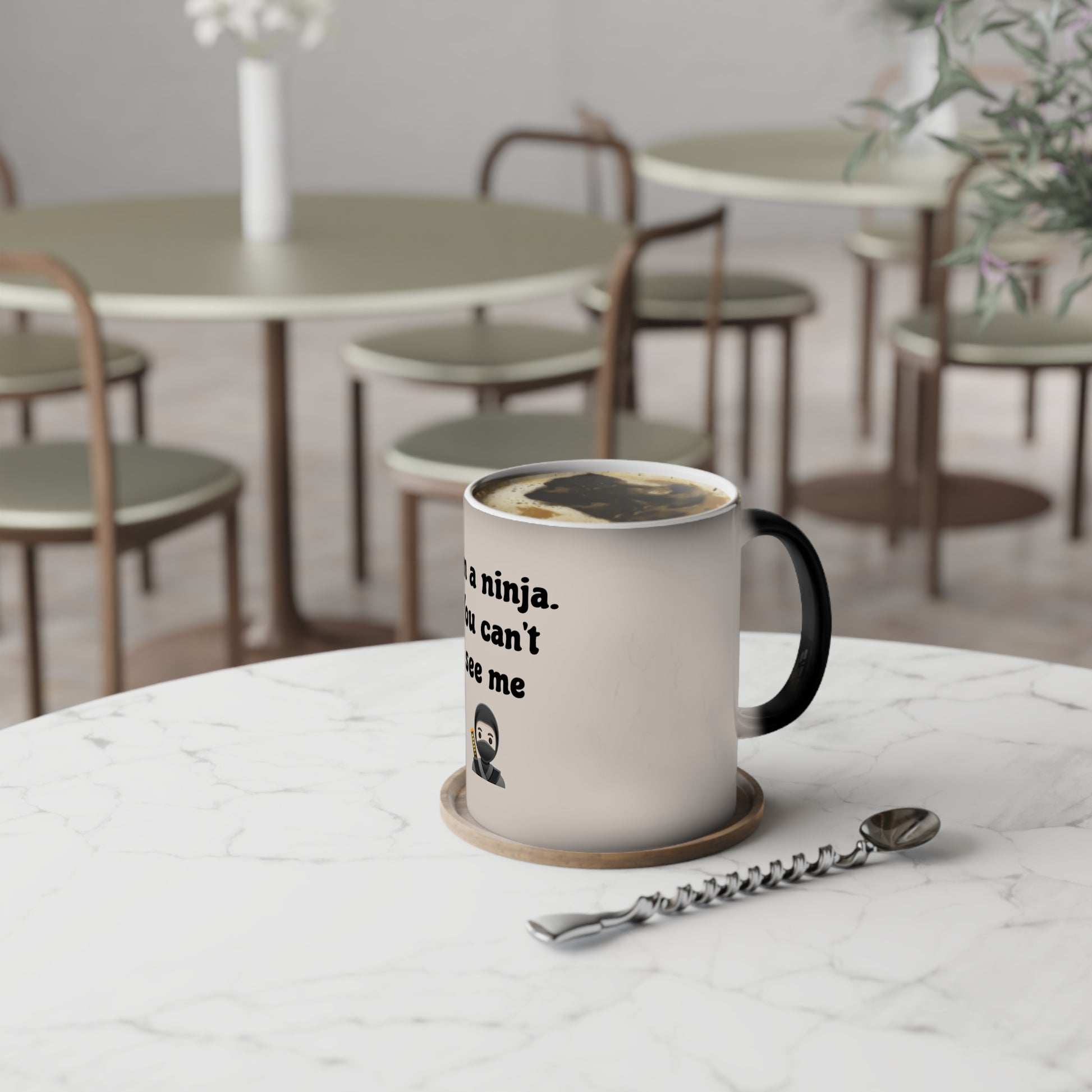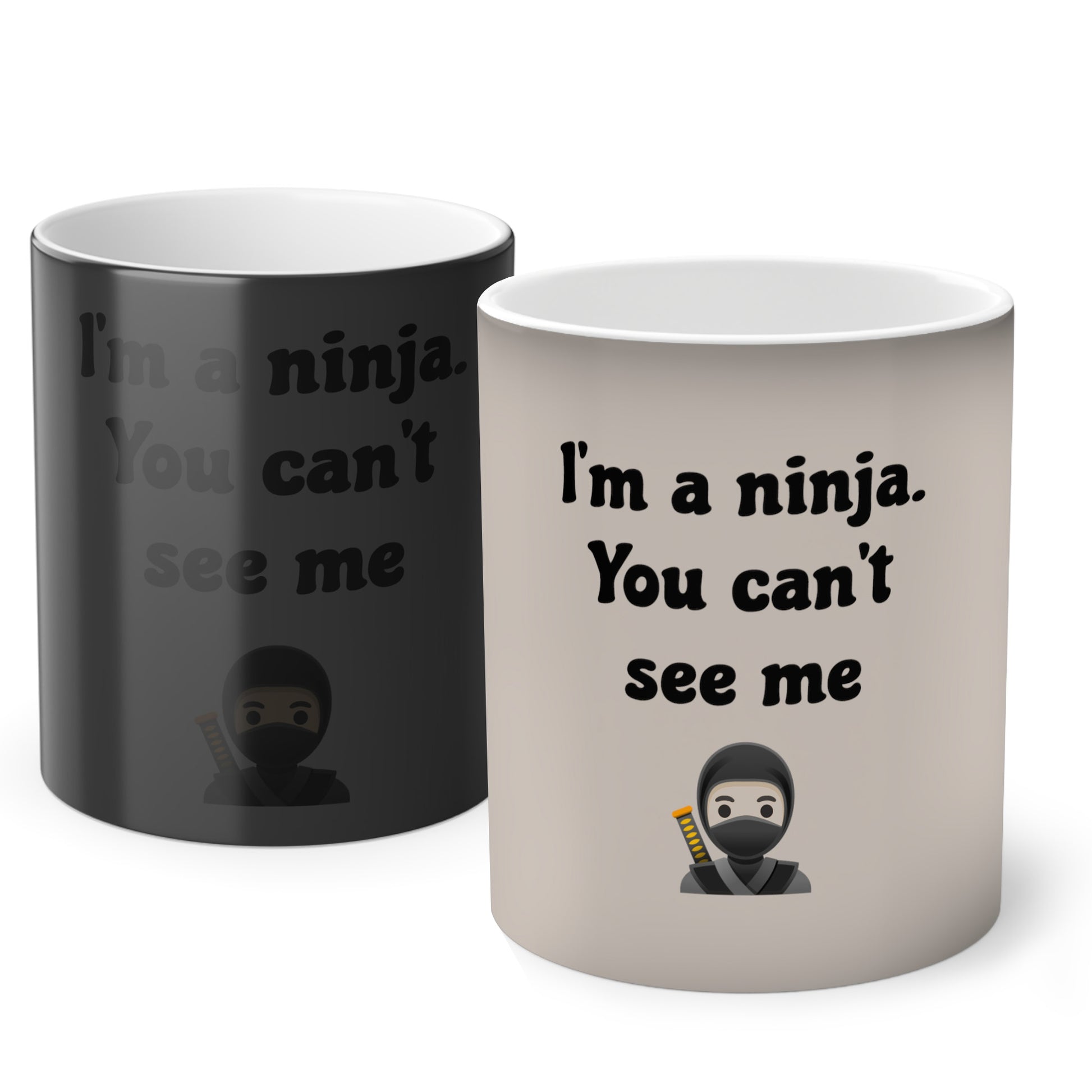 ☕️ Color-Changing Mugs• Text Revealed When Hot •11oz (0.33 l) • Ceramic • Lead and BPA-free • Heat-Reactive Design • Glossy FinishI’m a ninja. You can’t see me 🥷🏻